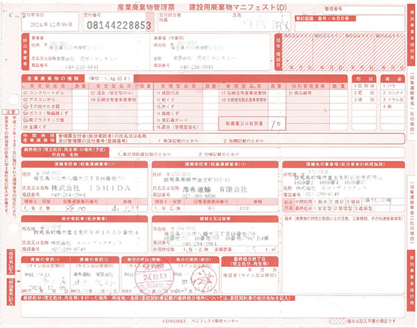 その後、東京都産廃プロフェッショナルISO14001を取得されてます、株式会社ISHIDAに委託しております。